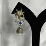Be the first to review “Brass Base German Silver Replica- Dual Tone Statement Jhumkis blue stone” Cancel reply