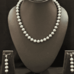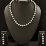Grey Pearl Beaded Necklace Round 8 Mm Beads Size Necklace With Studs.   Hand-strung with care, this necklace showcases raw Pearls  in their most authentic form. A true testament to artisan craftsmanship and natural beauty.